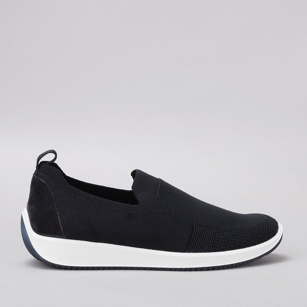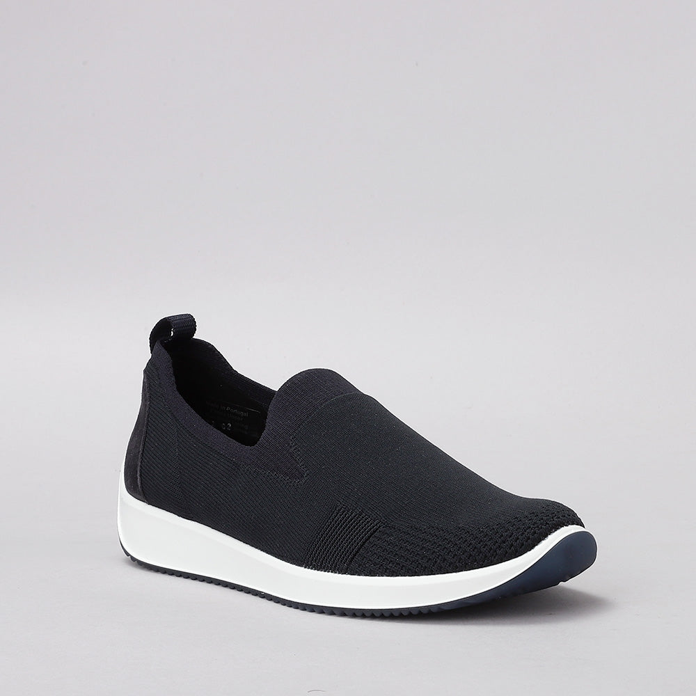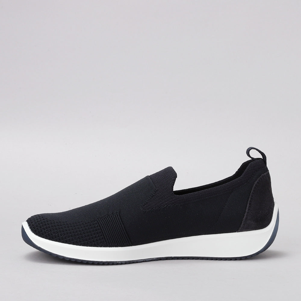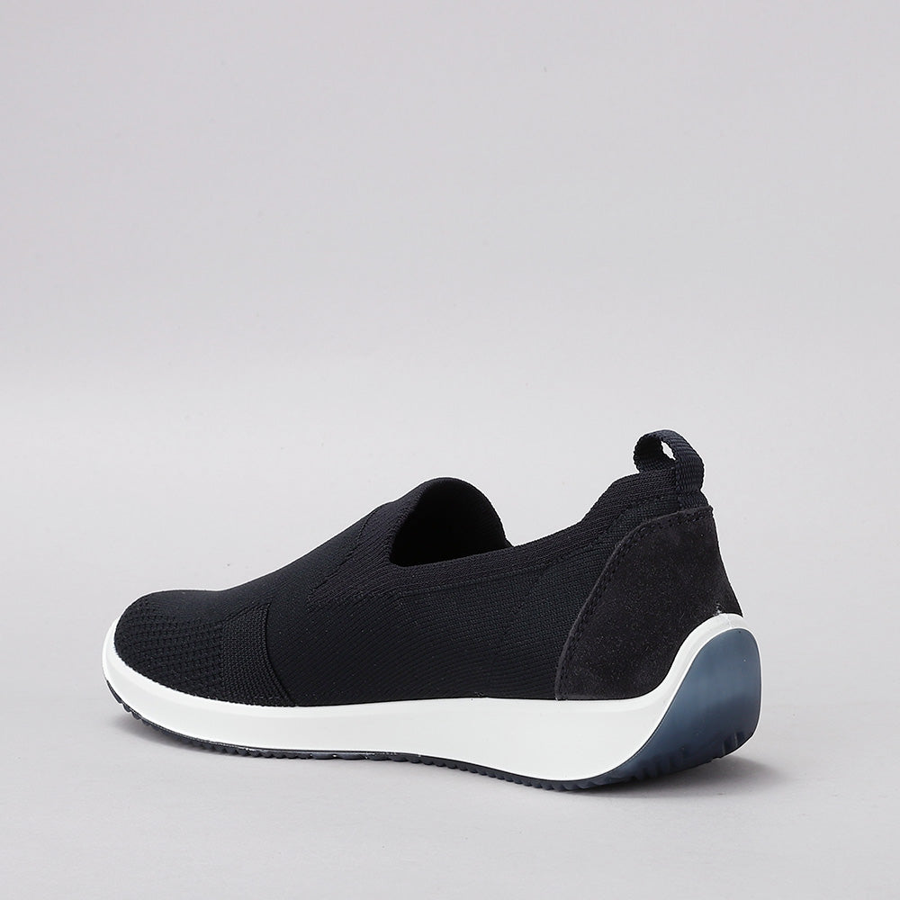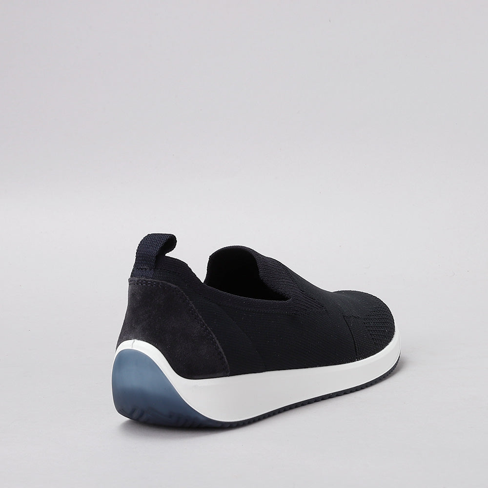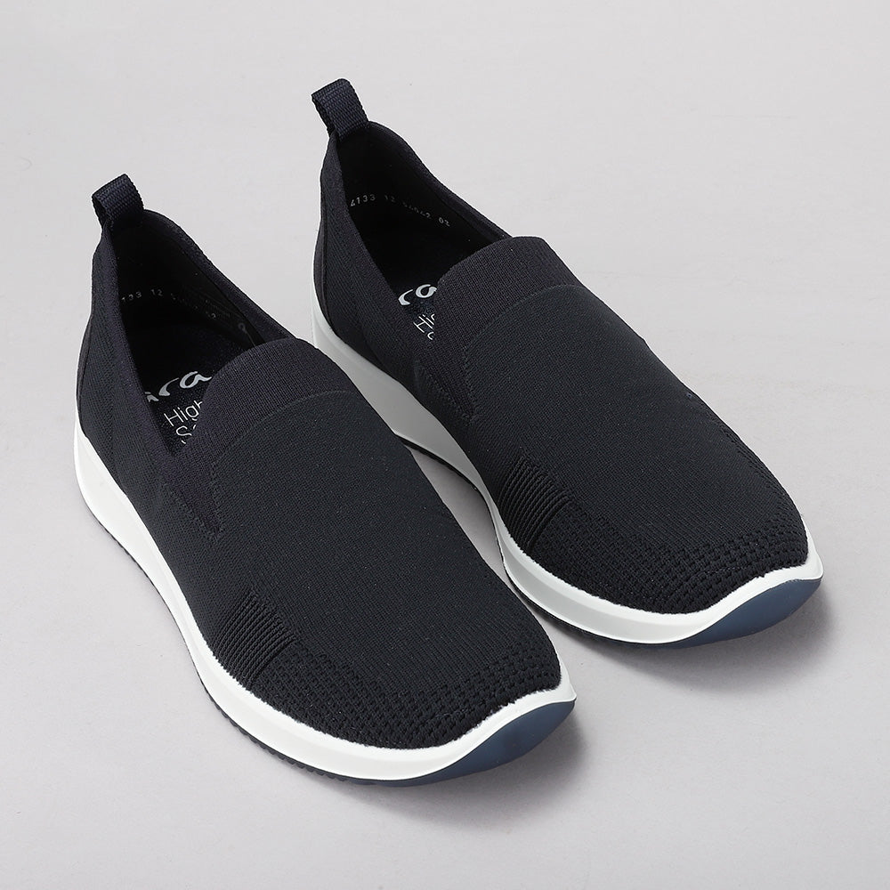 These super lightweight slip-on shoes are made of soft textile combined with leather on the heel. Another highlight is the padded removable footbed, which is covered with terry cloth and can be replaced with your own insoles in an instant if required. The comfortable Highsoft function, a combination of soft upper material and a foam-based sole, offers comfortable support and flexibility by gently absorbing the arch of the foot. The soft textile lining guarantees a high level of comfort. A textile HiFlex knitted shaft prevents the formation of pressure points in the ankle area, while the elasticated edge with an elasticated band ensures a good fit. The loop at the heel makes it easier to put the shoes on and take them off. The sporty wedge sole with the reinforced heel looks very trendy. Jeans, skirt, leggings - there are no limits to your creativity when choosing an outfit, whether you're strolling through the city or relaxing in a café.