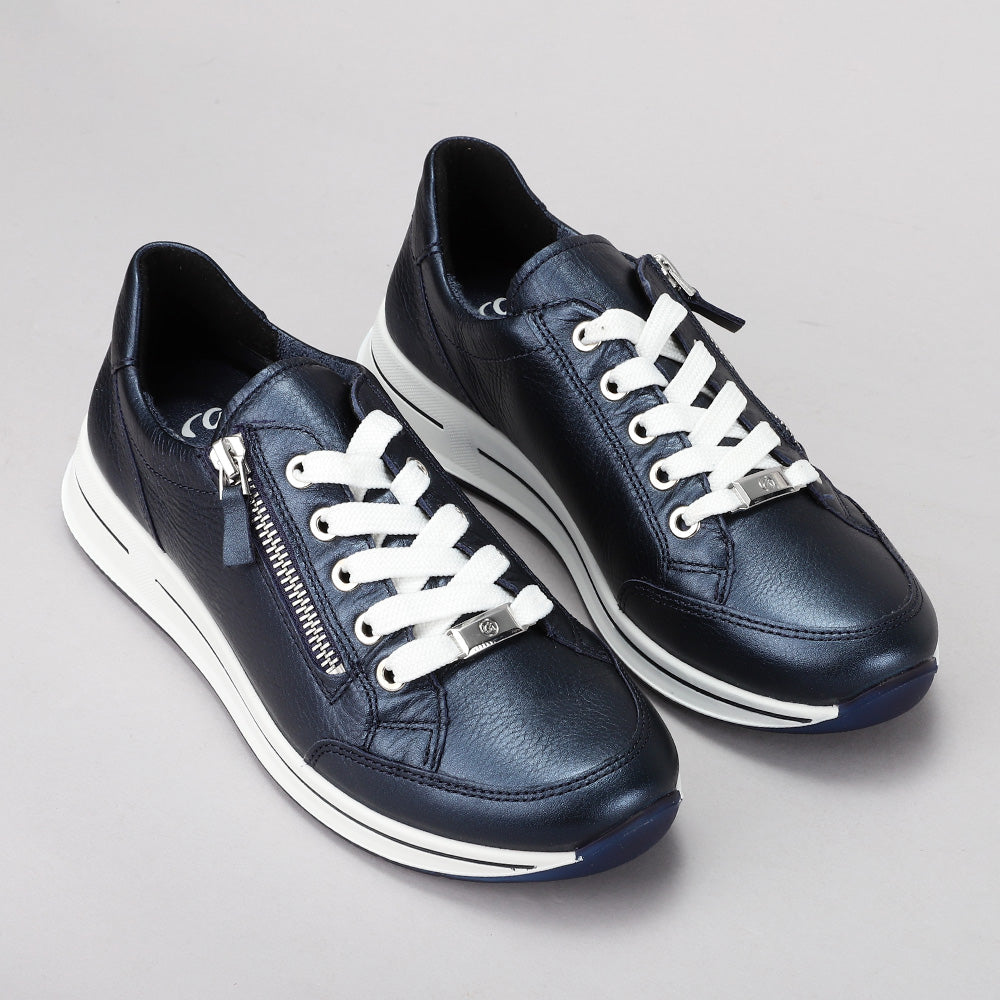 With Osaka by ARA you are well advised if you are looking for a modern look and high quality. Soft leather was used as the upper material. Special attention should also be paid to the interior: terry cloth based on bamboo fibers absorbs a lot of moisture, dries quickly and its softness prevents the development of pressure points. Thanks to the comfortable high soft function made of soft upper material and a sole with a special foam insert in the ball area a pleasant sense of well-being is ensured with every step. It relieves the arch of the foot and offers great flexibility. The zipper and lacing provide the best of both worlds: reliable hold and easy handling. Since the shoe is also equipped with an H-width for wide feet and a practical removable footbed it offers everything your heart desires.