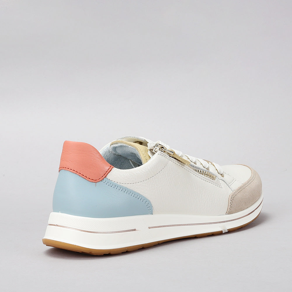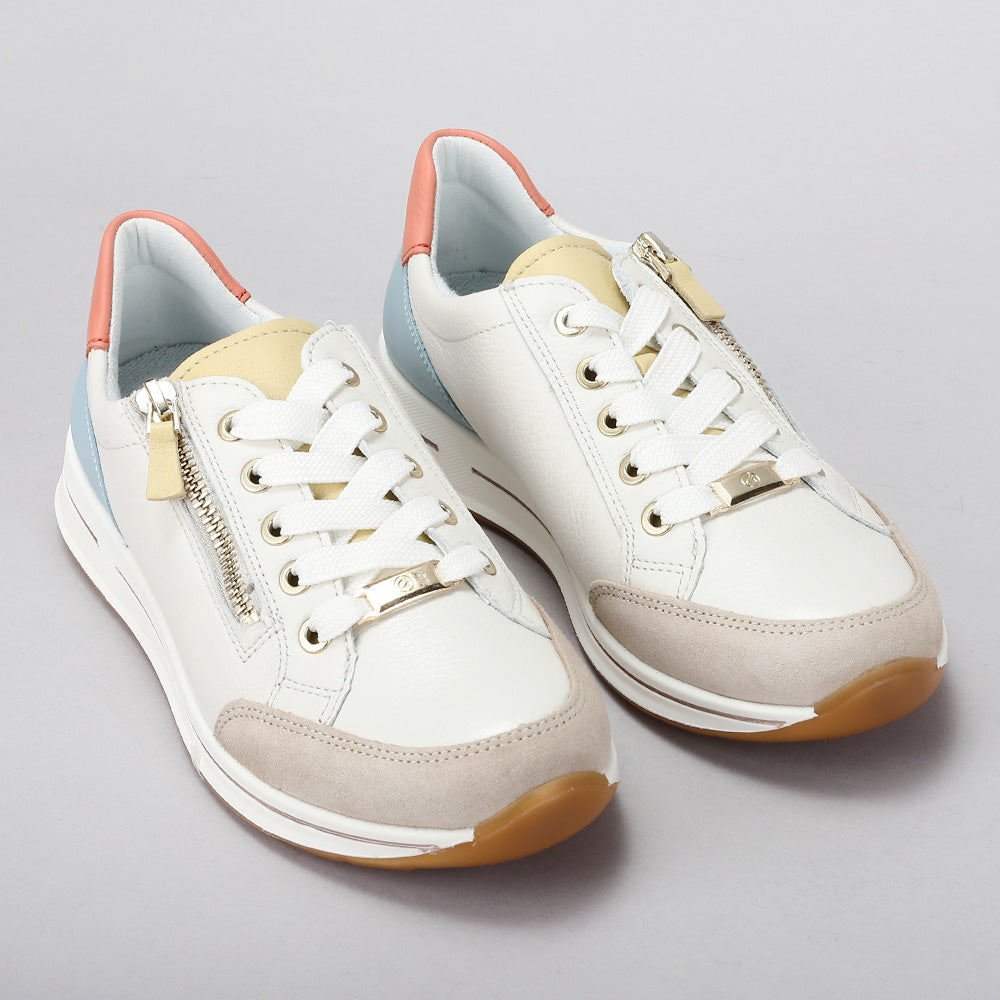 With Osaka by ARA you are well advised if you are looking for a modern look and high quality. Soft leather was used as the upper material. Special attention should also be paid to the interior: terry cloth based on bamboo fibers absorbs a lot of moisture, dries quickly and its softness prevents the development of pressure points. Thanks to the comfortable high soft function made of soft upper material and a sole with a special foam insert in the ball area a pleasant sense of well-being is ensured with every step. It relieves the arch of the foot and offers great flexibility. The zipper and lacing provide the best of both worlds: reliable hold and easy handling. Since the shoe is also equipped with an H-width for wide feet and a practical removable footbed it offers everything your heart desires.