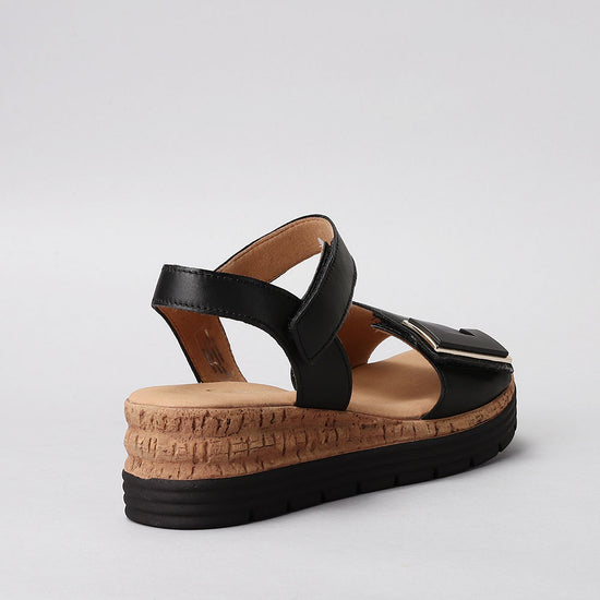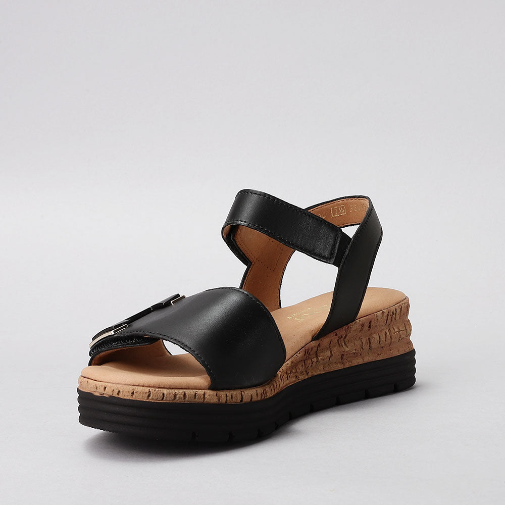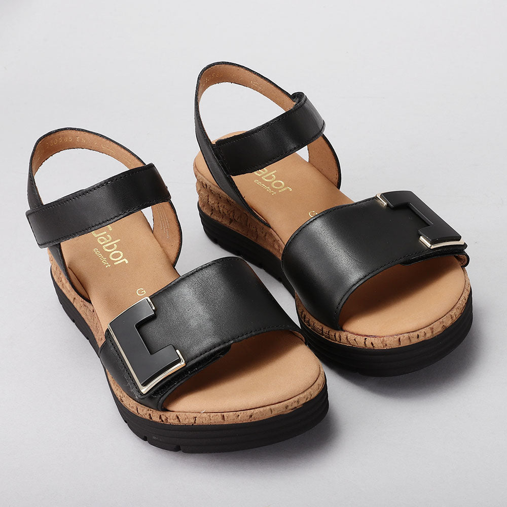 The Gabor 62.700.57 women’s sandal in black smooth leather blends elegance with comfort. Featuring a golden buckle, soft micro lining, and cushioned insole, it ensures all-day ease. With a comfort width “G” and wider tread, it provides extra room and freedom of movement while maintaining a secure fit. A stylish choice for both casual outings and work.