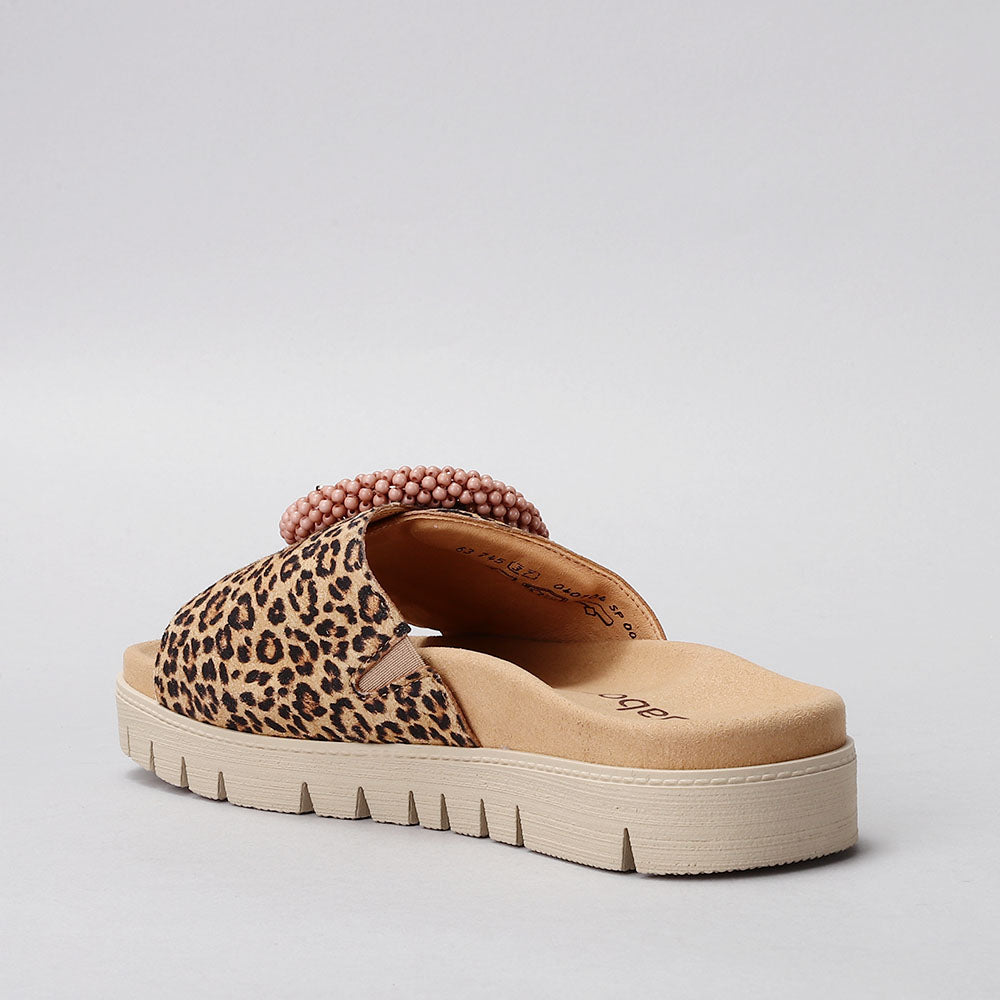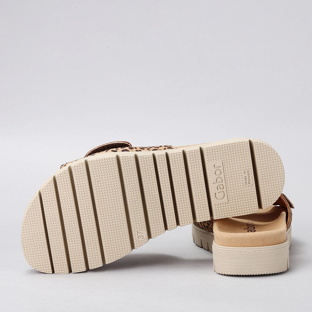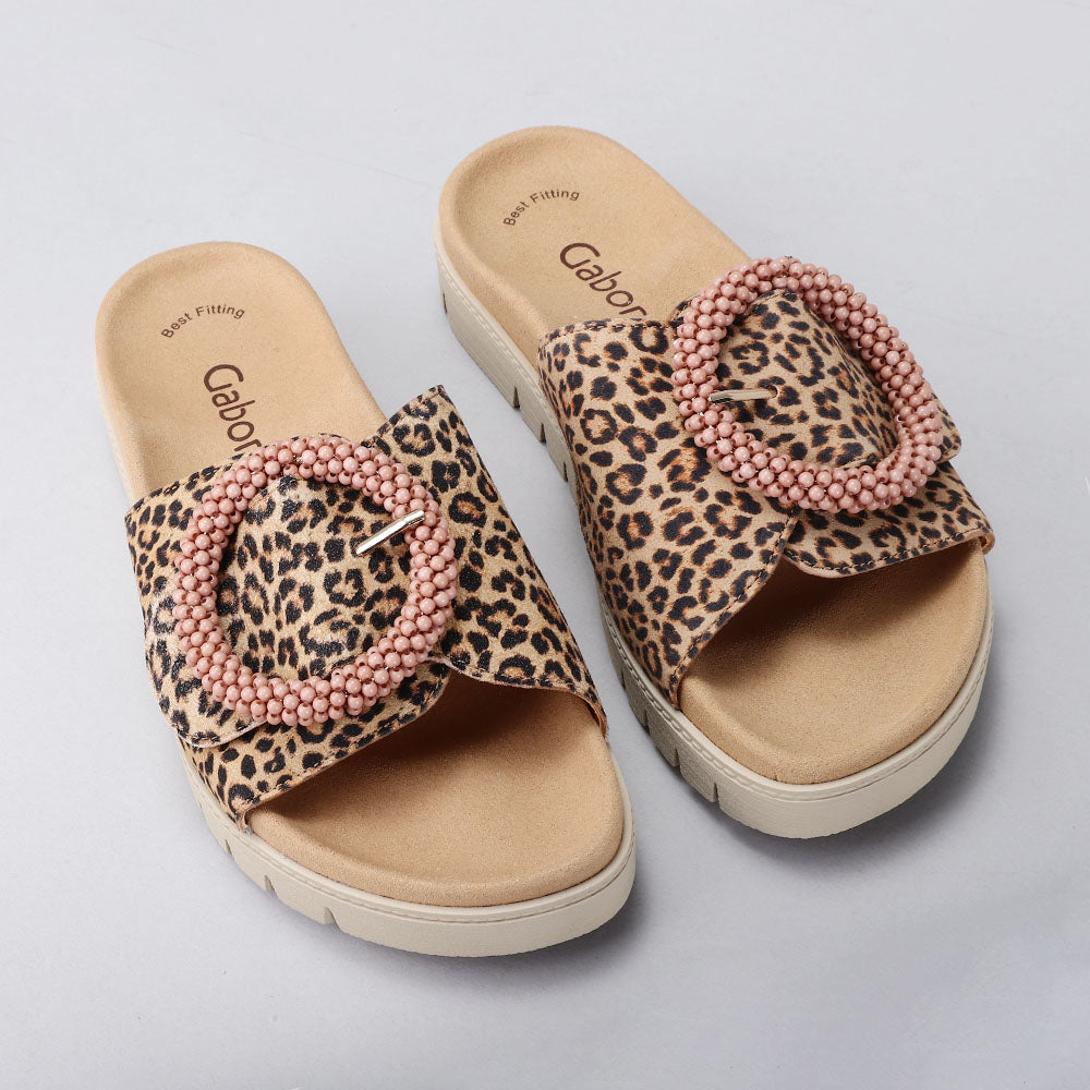 Step up your look with the GABOR 63.745.32 sandal. Crafted in LEOPARD, this slide features supportive arch comfort and an adjustable strap for the perfect fit. A striking buckle adds a chic, elegant detail, making it the ideal blend of style and all-day wearability.