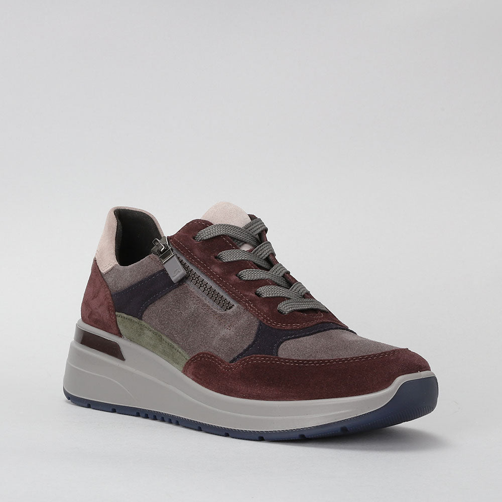 These trainers offer a perfect blend of style and comfort. A terry cloth lining and bamboo-based, moisture-wicking removable footbed keep your feet dry and cozy, while the soft yet durable upper with adjustable lacing and a side zip ensures an easy, secure fit. HighSoft technology and soft padding reduce fatigue, and the thick, non-slip wedge sole adds a sporty touch.