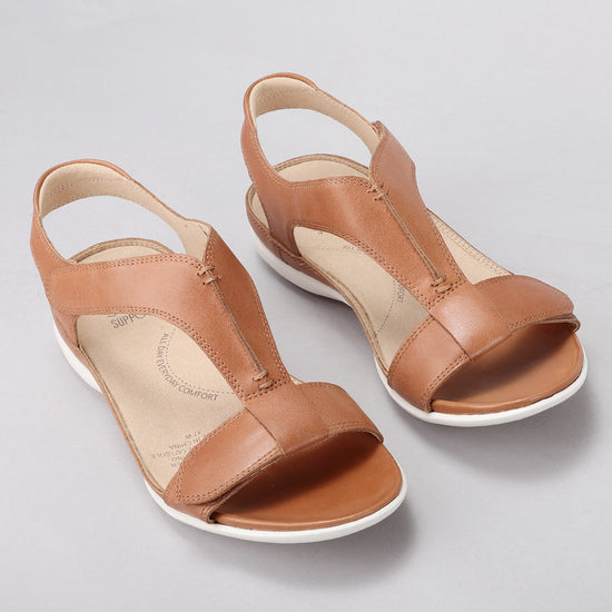 Step into sleek sophistication with the Dark Tan Stride Sandal—a modern essential for effortless style. Featuring a Super Support footbed offers high arch support and a deeper fit that cups the foot for stability. Crafted in a nice finish, this open-toe design features a cushioned insole and a lightweight white sole for all-day comfort. The diagonal strap adds a bold architectural touch, while the minimalist silhouette keeps things versatile. Whether you're strolling city streets or styling for a summer soirée, this sandal brings a polished edge to every step.