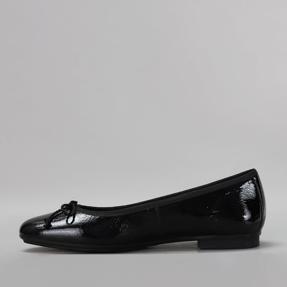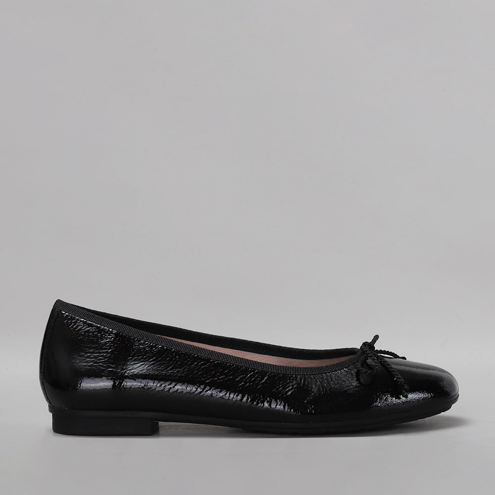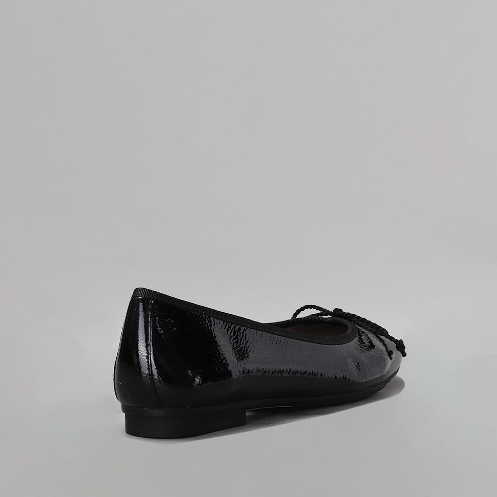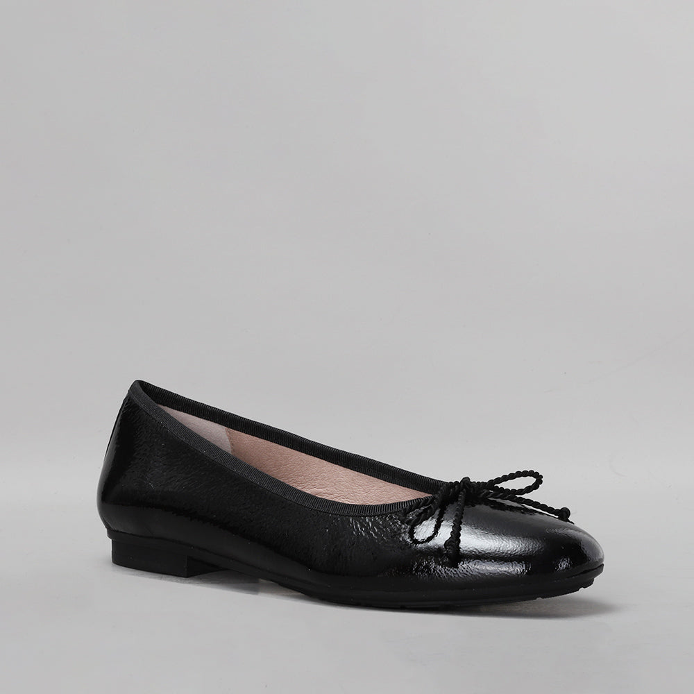Patent leather classic ballerina with bow detail on the toecap and elastic binding that allows a perfect fit to the foot. A model made in Spain featuring our Triflow triple cushioning technology.