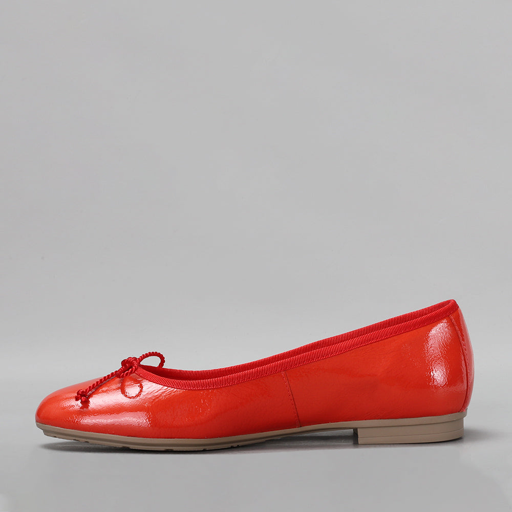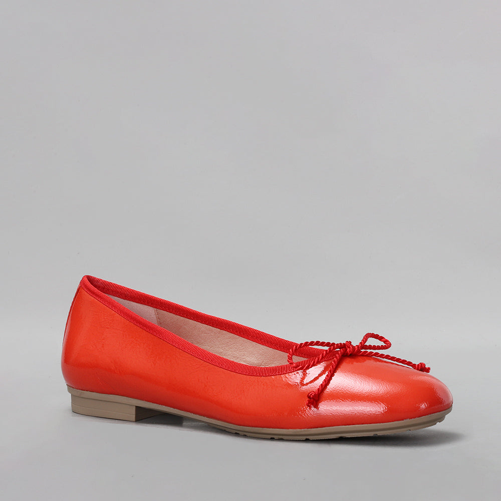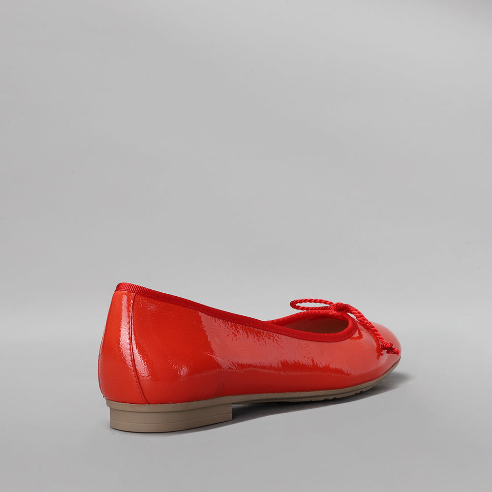 Patent leather classic ballerina with bow detail on the toecap and elastic binding that allows a perfect fit to the foot. A model made in Spain featuring our Triflow triple cushioning technology.
