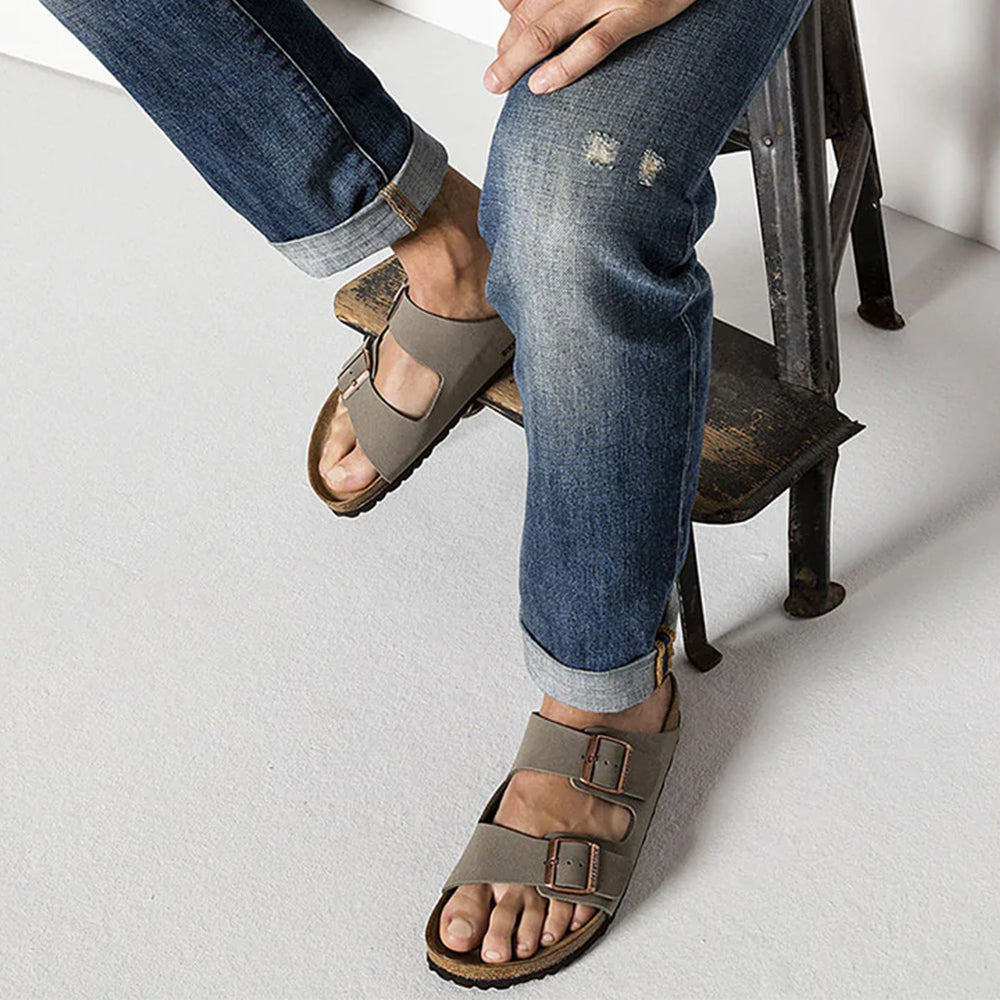 - The Arizona Birko-Flor has two adjustable straps, so you can buckle each strap to securely hold your foot in.