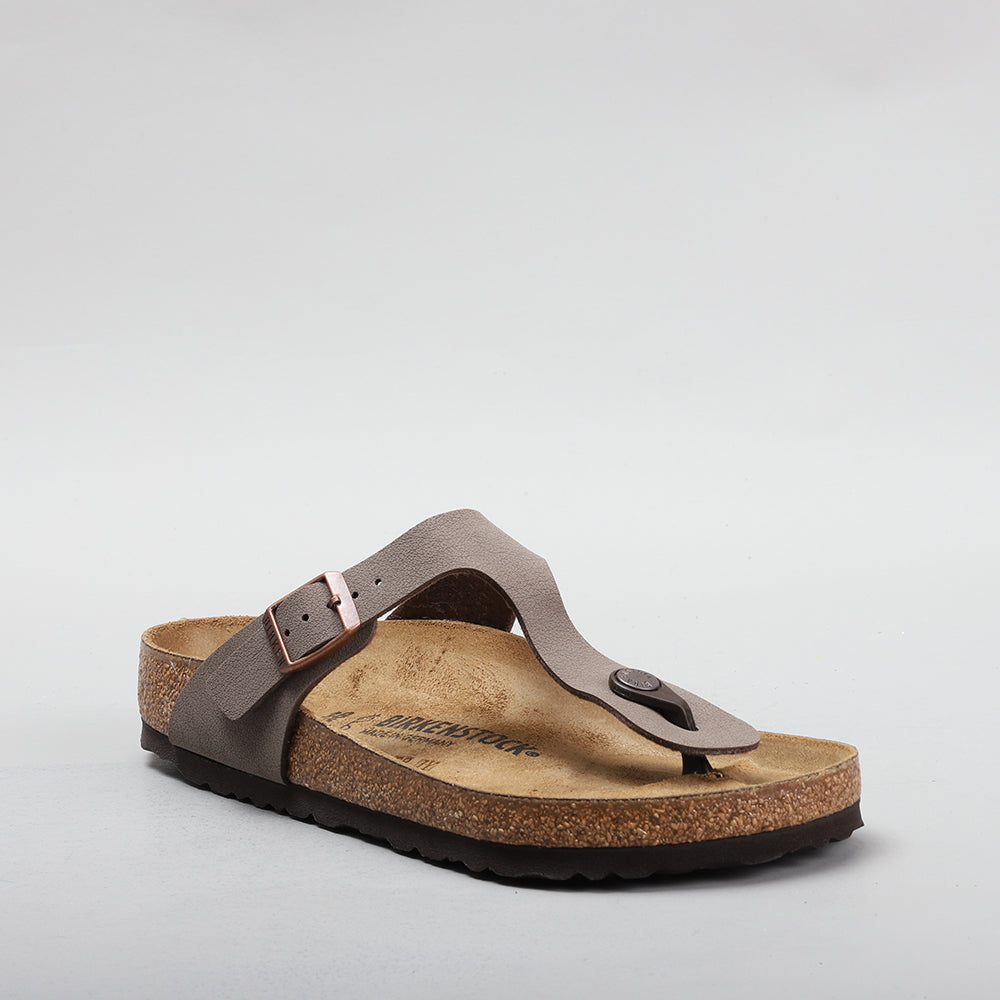 The BIRKENSTOCK Gizeh is a genuine classic and a stylish all-rounder. Our elegant thong sandal combines optimum grip with minimalist, fashionable design. The upper is made from the skin-friendly, hard-wearing synthetic material Birko-Flor® in a sophisticated nubuck look which boasts a texture and color that could almost be mistaken for real leather.