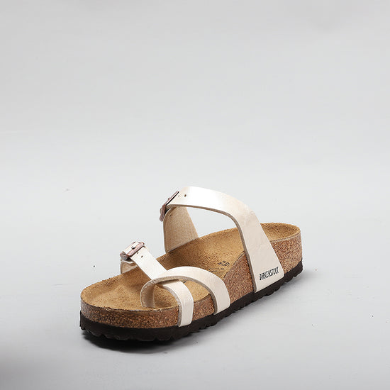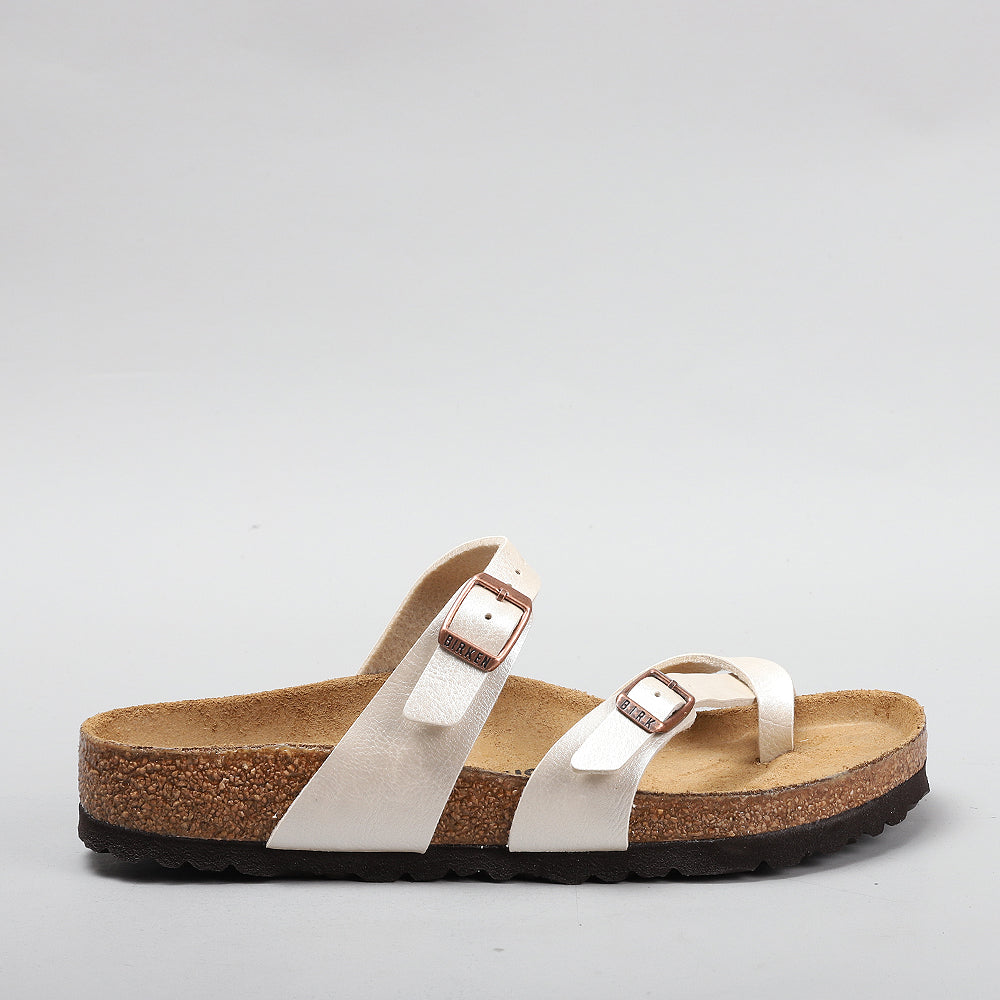 The BIRKENSTOCK Mayari thong sandal is a distinctive classic model with a toe loop and cross strap. The combination of anatomically shaped footbed and secure adjustable instep strap makes Mayari extremely wearable in a wide range of situations.