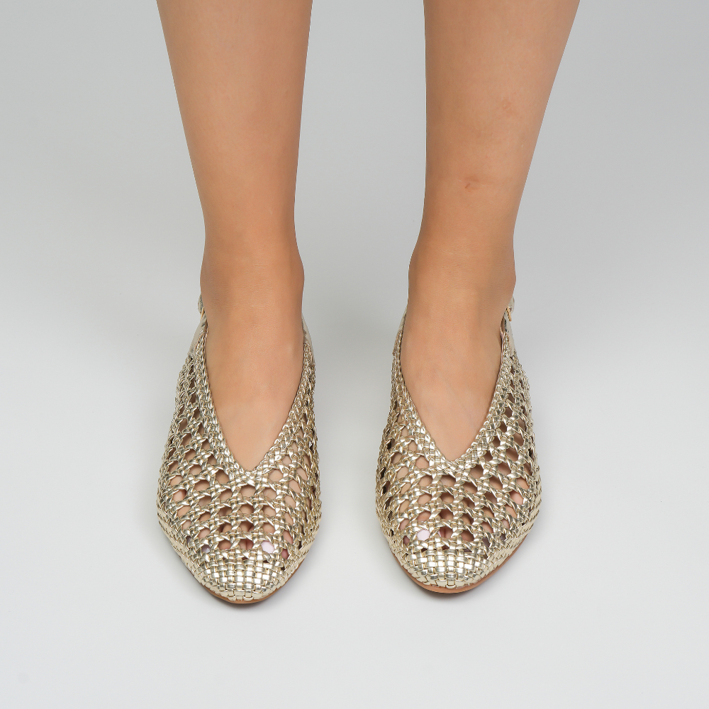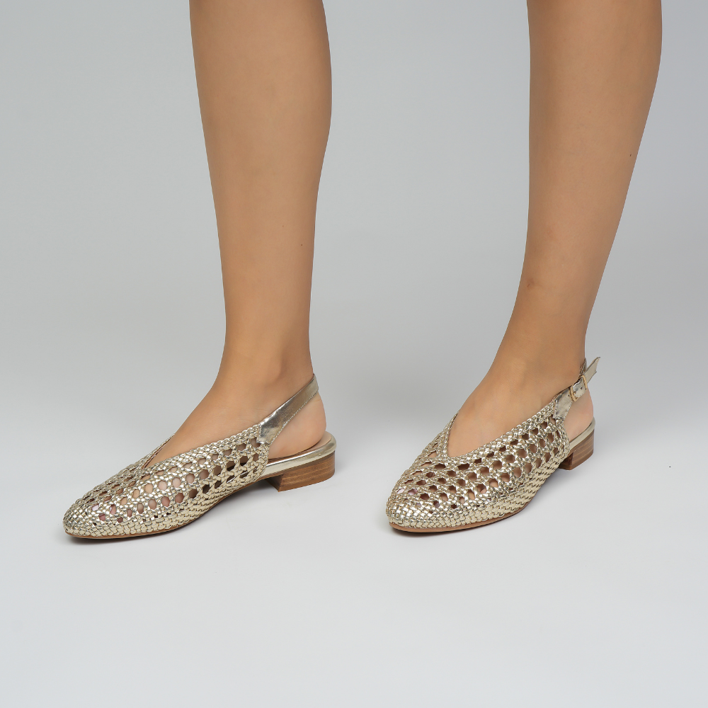 Step into effortless elegance with the Camila. Designed with a breathable woven upper and sleek slingback silhouette, this versatile flat blends comfort and timeless charm. Finished with a low stacked heel and adjustable strap for all-day ease — perfect for sunny days and casual outings.