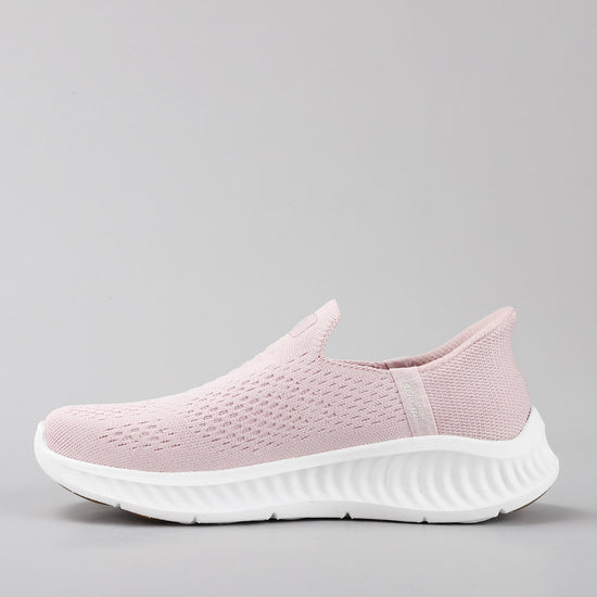 Step into convenient walking comfort and cushioning wearing Skechers Hands Free Slip-ins® GO WALK® Now - Anahi. Designed with our Heel Pillow®, this sporty vegan slip-on features an engineered stretch knit upper in a laceless fit, a Skechers Air-Cooled Goga Mat™ insole, and responsive ULTRA LIGHT cushioning.