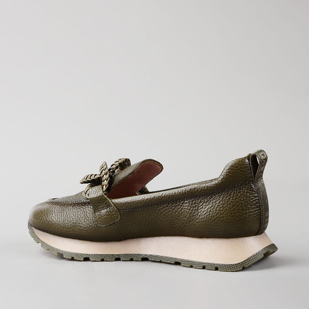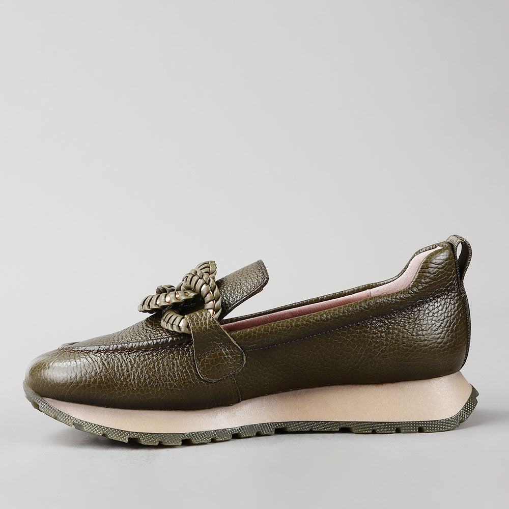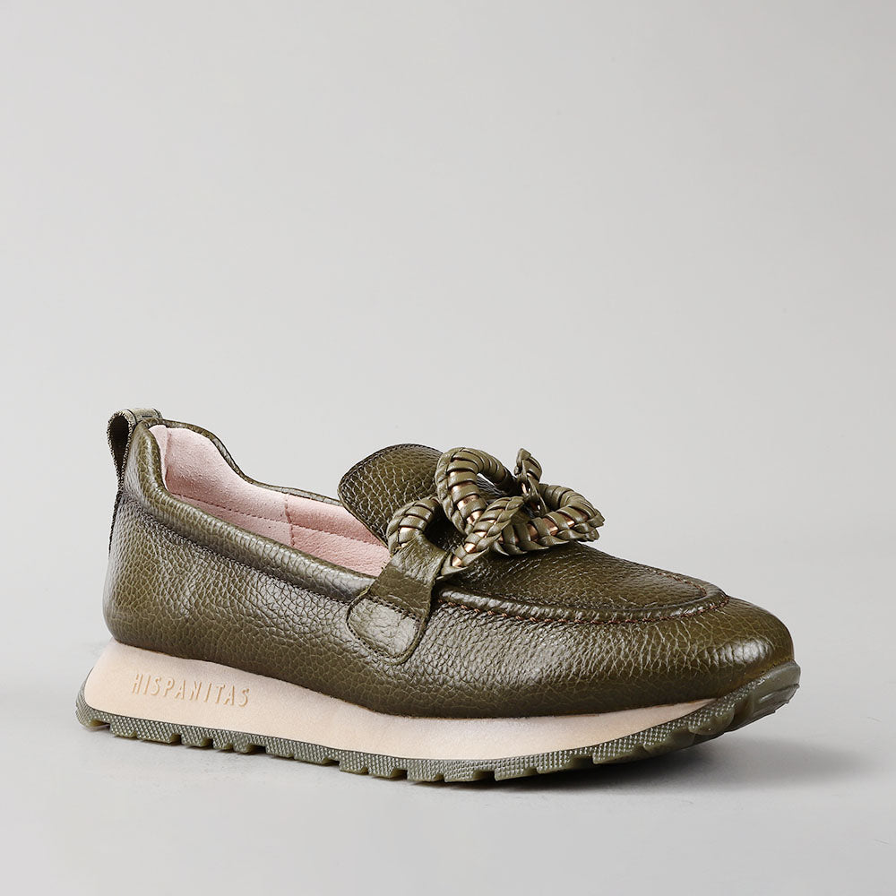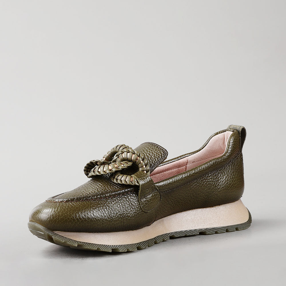 Sporty shoe with elastic laces for easy fitting. Cotton laces included for matching. 3 cm thick sole made of thermoplastic rubber. Leather. Non-animal-based, 100% breathable, and thermoregulating inner lining. Triflow Technology: Triple cushioning in the tread area provides a cushioned effect when walking. Includes a removable anatomical insole.