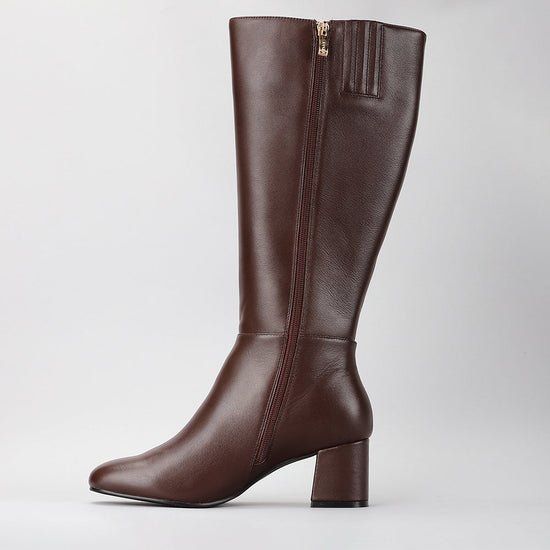 Meet Robel: a sleek, knee-high boot crafted in smooth leather with a mid block heel - elegant, timeless, and made for everyday sophistication.