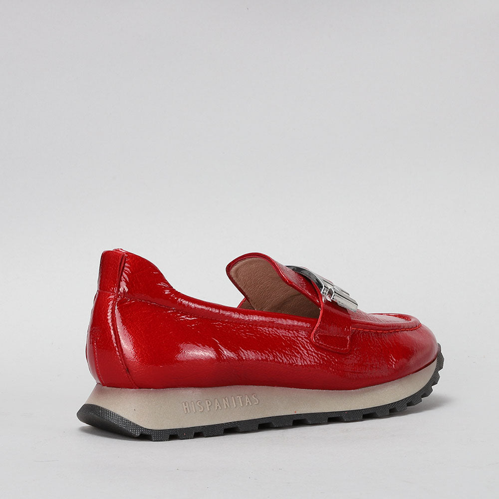 Sport moccasin with volume sole and maxi buckle ornament with the Hispanitas logo on the instep. This model incorporates the Triflow technology. It also features a removable insole.