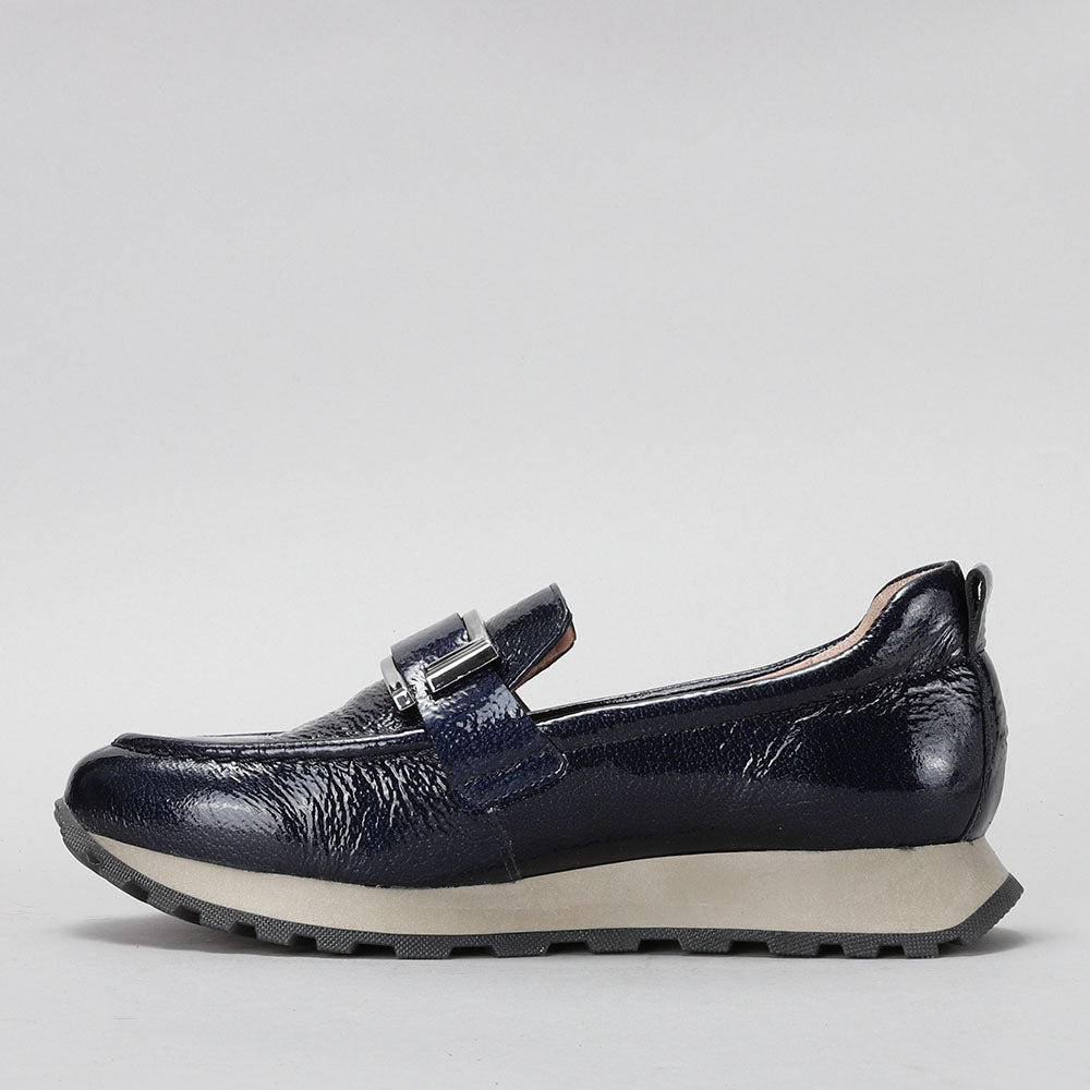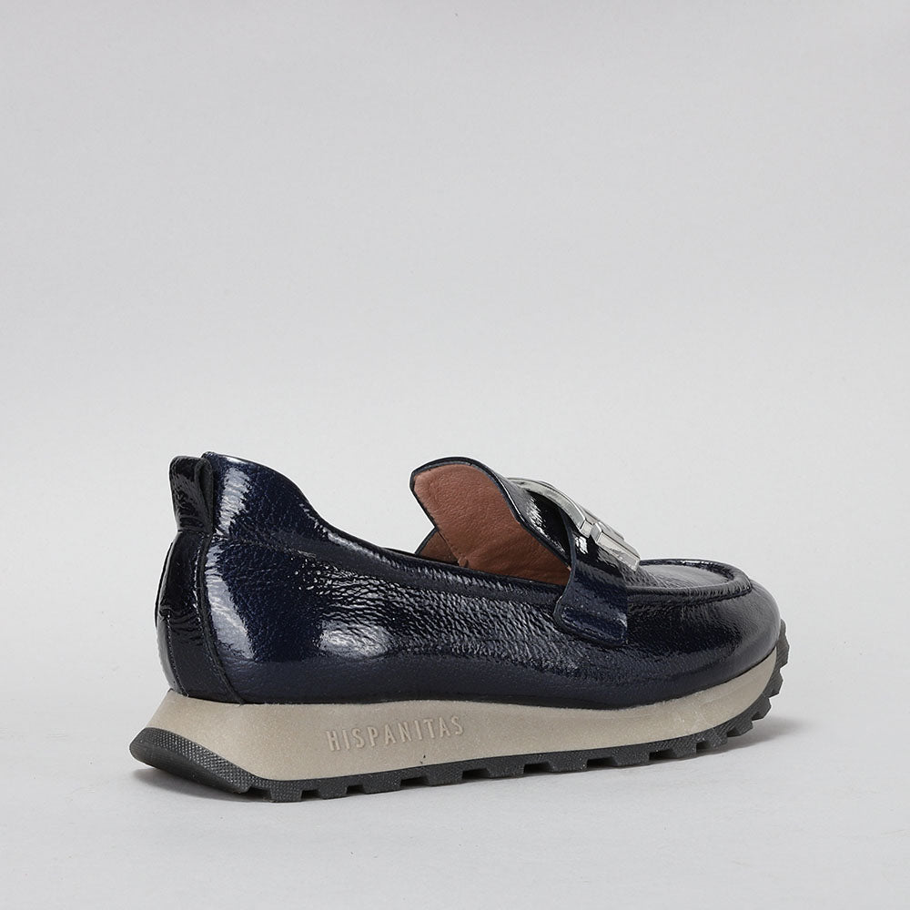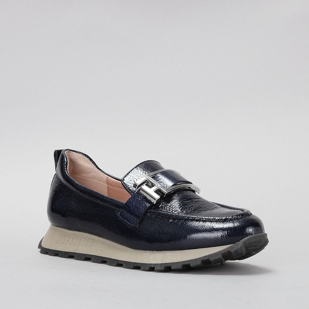 Sport moccasin with volume sole and maxi buckle ornament with the Hispanitas logo on the instep. This model incorporates the Triflow technology. It also features a removable insole.