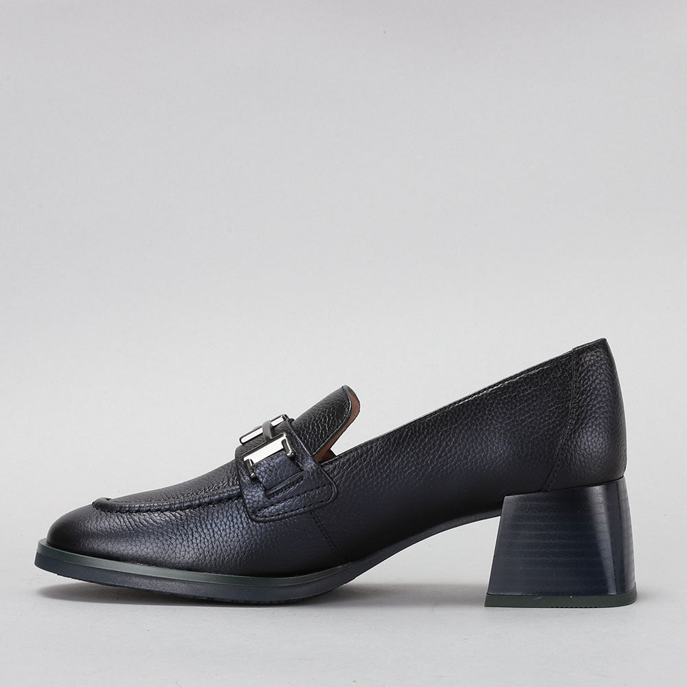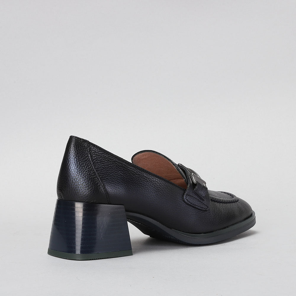 Moccasin with 5 cm block heel and link chain trimming with double "H" isotype on the instep. This shoe incorporates the TRIFLOW technology, which cushions each step providing flexibility and comfort on the tread, thanks to its triple cushioning.