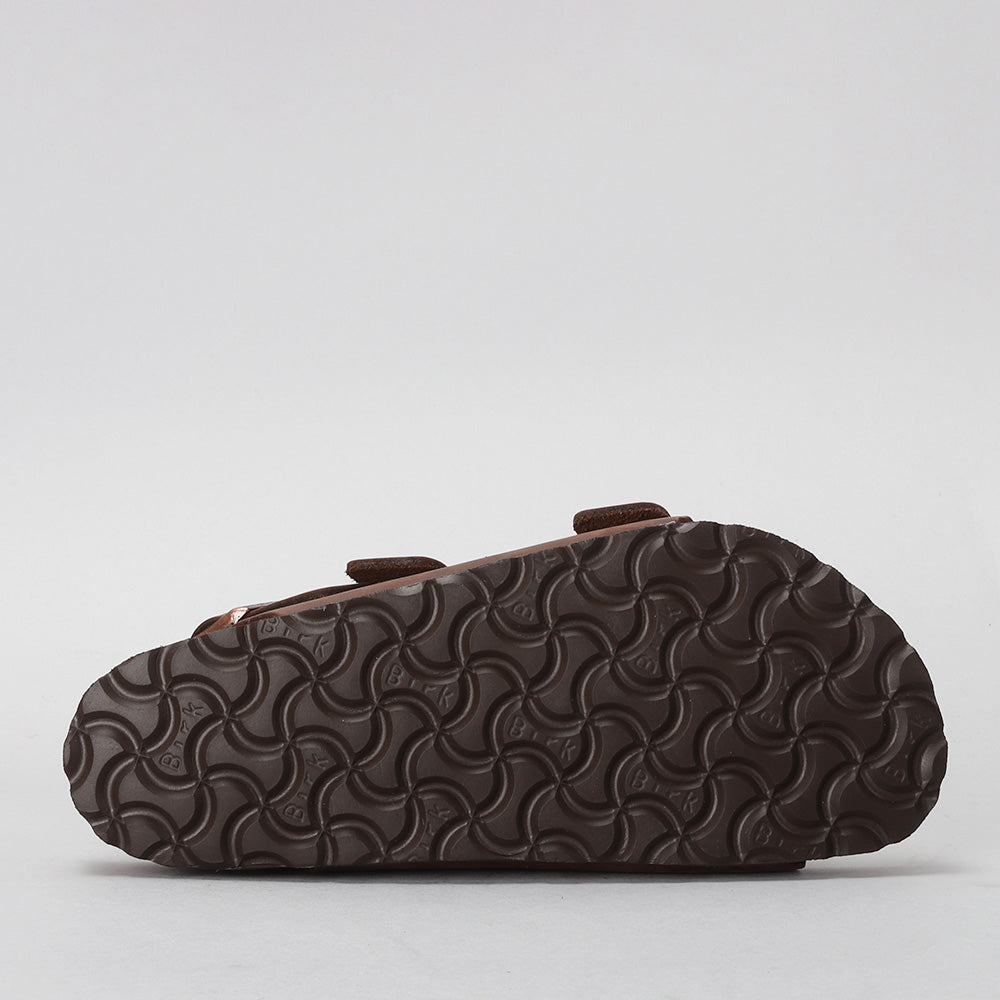 The Milano sandal adds an adjustable backstrap to its classic, two-strap design, giving you more security and a fit that's just right. Handcrafted for quality, oiled nubuck leather looks distinctly heritage, designed to age over time for a perfectly worn, one-of-a-kind look. Complete with classic BIRKENSTOCK design elements, like adjustable buckle closures and a contoured cork-latex footbed for the ultimate in support.
